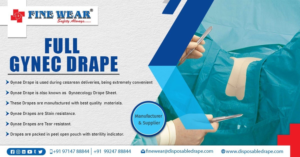 Dhwanit Enterprise offers a complete range of gynecology drapes including Caesarean Drape, Full Gynec Drape, IVF Drape, Maternity Drape, and VSD Drape. Order requests are welcome to verify the superior quality of our products.