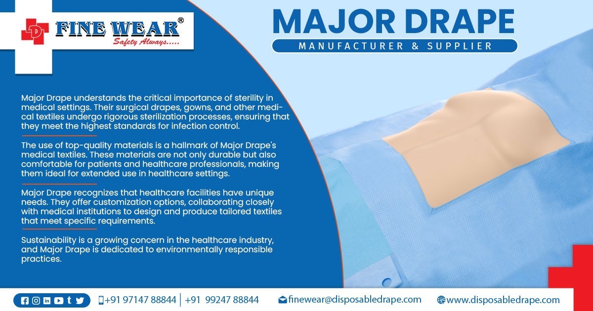Dhwanit Enterprise is a leading Manufacturer, Supplier, and Exporter of Medical Disposable Major Drape in Sohar, Oman. Our Fine Wear division provides high-quality surgical drapes designed to maintain strict sterile conditions during major surgical procedures.