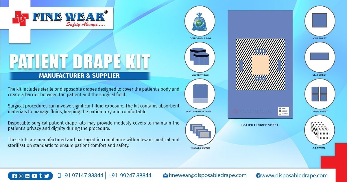 “Finewear Patient Drape Kit is a single-use, sterile draping solution manufactured from high-quality medical non-woven fabric, providing effective barrier protection, absorbency, and procedural efficiency.”