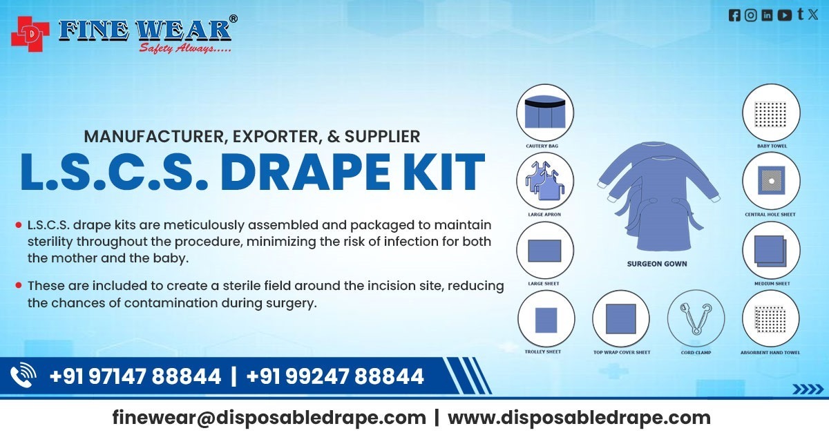 Medical Disposable L.S.C.S. Drape Kit is a specialized sterile kit designed for safe and hygienic cesarean (C-section) procedures. Manufactured in Ahmedabad, Gujarat, India by Dhwanit Enterprise, it ensures maximum protection for both mother and newborn.