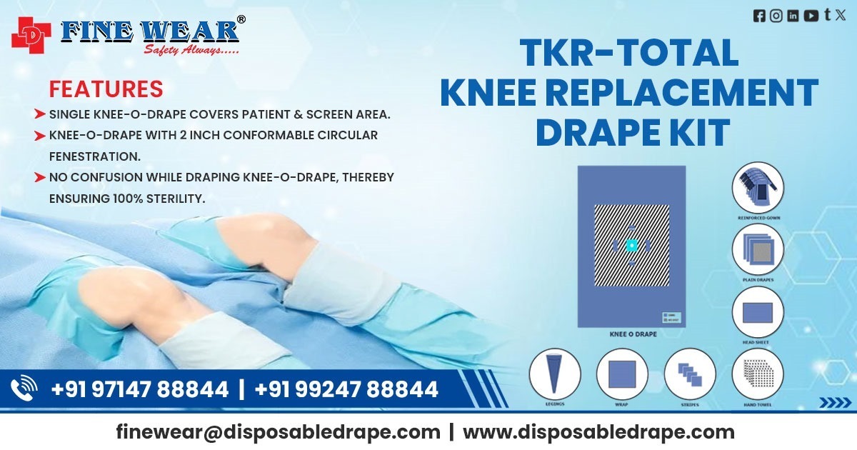 The MEDICAL TKR DRAPE KIT (Total Knee Replacement Drape Kit) is a specially engineered surgical solution designed to meet the precise needs of orthopedic procedures. It ensures maximum sterility, infection control, and surgical efficiency during knee replacement surgeries.