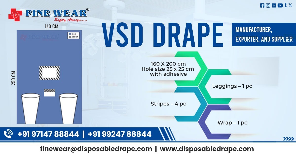 A Vacuum Assisted Closure Drape is a specialized surgical drape used primarily during cardiac and thoracic surgeries, especially in ventricular septal defect repairs. It creates a sterile barrier, protects the surgical field, and minimizes the risk of infection during complex operations.
