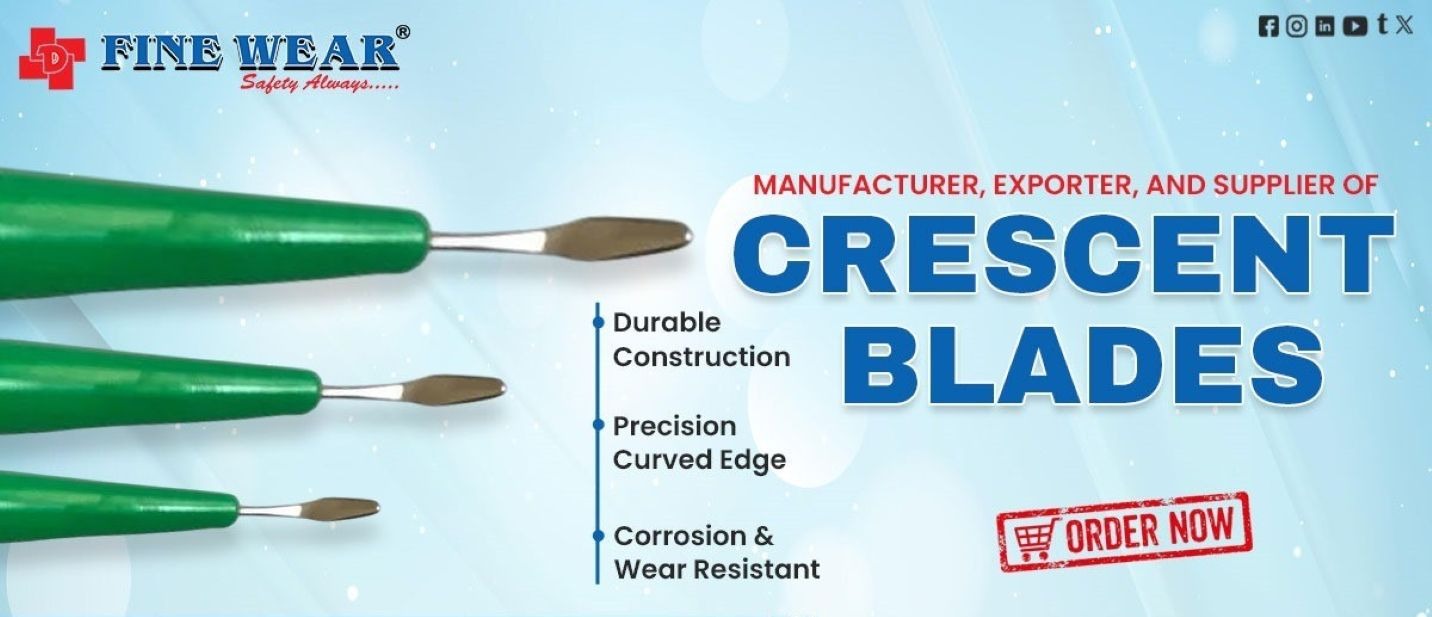 Trusted manufacturer & supplier from Ahmedabad, Advanced manufacturing techniques, Consistent quality assurance, Wide range of surgical disposables & accessories, SURGICAL CRESCENT BLADES – Designed for Surgical Excellence.